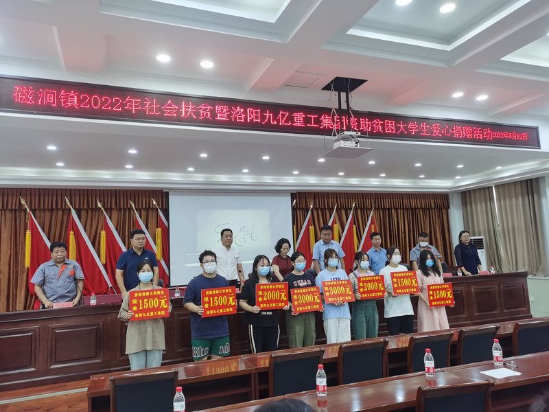 愛是與生俱來的,在血液里流動,在骨子里結晶,它源源不斷的由心而生,永不枯竭,只要人人都愿意奉獻一點愛,就如甘霖沐浴大地,人間處處盛開幸福之花! 為響應洛陽市政府精準扶貧政策,洛陽九億重工集團有限公司及董事長王九茂積極參與捐資助學的慈善義舉活動,特做出如下決定:1、公司幫扶磁澗鎮2017年新招貧困大學生21名順利入學,每人資助2000元,總計肆萬貳仟元整; 2、總經理王九茂(縣政協委員)以個人名義資助磁澗鎮南窯村2017年新招大學生6名,總計12000元整; 我相信,在社會各界的大力支持和共同努力下,我們的“愛心助學”活動將會惠及到更多的同學,為了夢想,刻苦讀書、報銷祖國,廣大同學也一定會在溫暖的社會大家庭里茁壯成長,必將成為國家建設的有用之才! 洛陽九億重工集團有限公司 董事長:王九茂